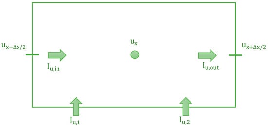 First, the space is discretised into n elements or volume segments. Equation (1) is then expressed as a finite difference differential equation following the nomenclature in Figure 1. Depending on the study problem, this nomenclature can be adapted, being able to implement different mesh sizes [51] or different shapes of volume elements. Equation (5) is as follows: