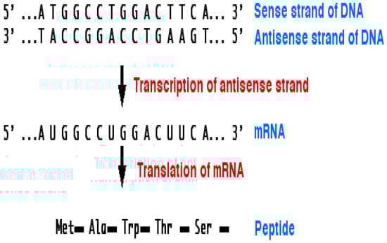 - Nirenberg, M.W.; Matthaei, J.H. The dependence of cell-free protein synthesis in E. coli upon naturally occurring or synthetic polyribonucleotides. Proc. Nat. Acad. Sci. USA 1961, 47, 1588–1602. [Google Scholar] [CrossRef]