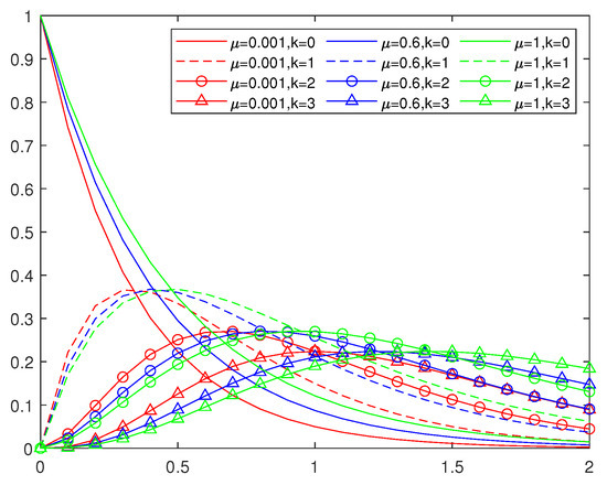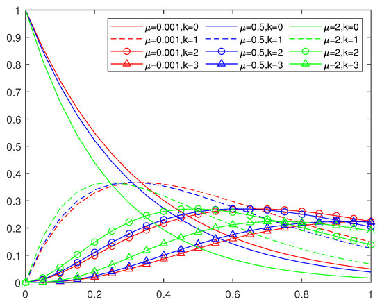 Figure 1 shows the Szsz type basis functions with of degree three, and Figure 2 shows the Szsz type basis functions with of degree three. We can observe the variation of the basis functions with parameters .
