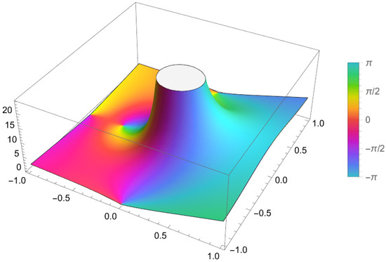 The functional will be studied in terms of the polar differentiation of the polynomial. The equality of Equation (6) represents the d’Alembert’s equation. For example, when is a constant, we have the following solution (see Figure 1):