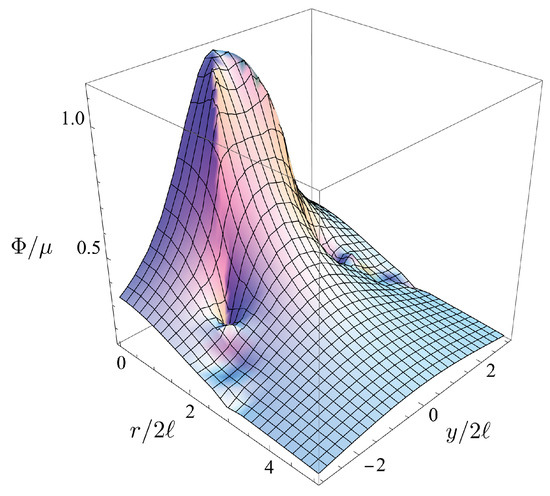 In order to obtain the nonlocal modification of the Kerr metric, we proceed as follows. At first, we calculate a nonlocal version of the potential function . To achieve this, we consider the following modification of the Equation (30)