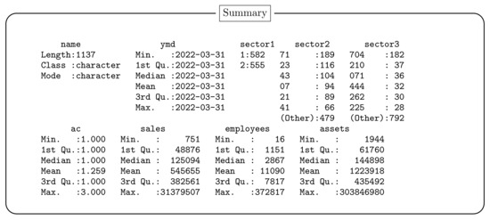 Of note, the banking industry has a unique profit structure in Japan, and for this reason it will not be included in the empirical analysis that follows. Even if the data set is processed with such a policy, in reality, some specific financial institutions may remain in the data set. The Japan Exchange Group and Japan Securities Finance are companies with particular roles. Japan Post was included in the primary screening because it is the holding company for a privatized post office and is classified as a service company.