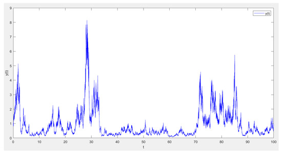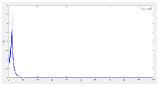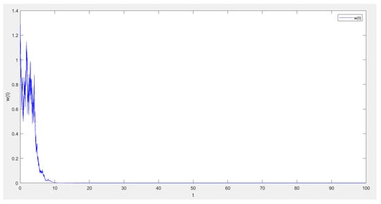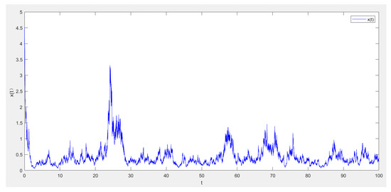 Theorem 2 indicates that when the parameters satisfy the above conditions, the population of the system (5) will become extinct. In order to prove the validity of the theorem, the parameter set is taken , , and the condition satisfies Theorem 2. And the time interval is discretized into , where the time step is a constant. The numerical simulation is shown in Figure 1, Figure 2, Figure 3 and Figure 4.