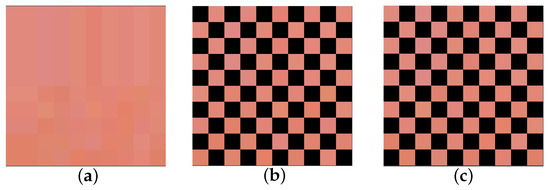 In order to use the proposed convolutional neural network prediction model described in the following text, we partitioned the original carrier image into two subsets of images. To achieve this, we traversed the carrier image I and set the pixels whose coordinates satisfied Equation (9) to zero, resulting in the subset image . Here, i and j denote the horizontal and vertical coordinates of the pixel, respectively. We then traversed the image I again and set the pixels that did not satisfy Equation (9) to zero, resulting in the subset image . To illustrate this process, we selected the top-left 100 pixels of Lena for subdivision, as shown in Figure 3. After subdivision, we obtained two disjoint but highly correlated images. These two subset images are used for convolutional neural network prediction in the following.