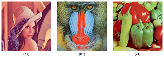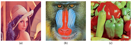 Images used in the experiment. (a) is Lena, (b) is Baboon, and (c) is Peppers.