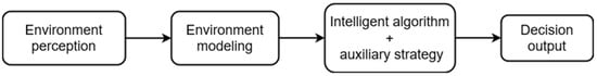 Traditional dynamic programming systems, as shown in Figure 1, prioritize real-time performance. However, the construction of an environment model and the iterative process of intelligent algorithms hinder real-time performance the most. Furthermore, an accurate environment model depends on precise sensing equipment, and planning auxiliary strategies often require accurate auxiliary information (such as velocity and direction), which can result in high implementation costs. Therefore, exploring a more cost-effective, simple, and reliable dynamic programming method is of great significance for reducing algorithm investment, lowering costs, and improving system versatility [6,7].