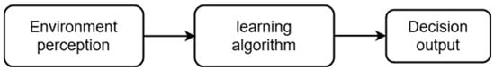 Deep learning (DL) is undoubtedly the most promising algorithm for achieving this goal. Any planning system is nothing more than a mapping from perception to decision [8]. As shown in Figure 1, the environment model, auxiliary strategy, and intelligent algorithm are a series of mapping functions. The deep learning network has powerful nonlinear expression ability due to its special structure. It only requires very simple perception devices, can learn the mapping relationship between input and output through sufficient training, and store the learned weights on the connections between neurons. Therefore, the dynamic programming system based on deep learning will become the structure shown in Figure 2. The trained learning algorithm only needs several matrix multiplication and addition calculations in the planning process, without looping iteration, and has good real-time performance.