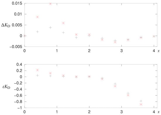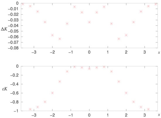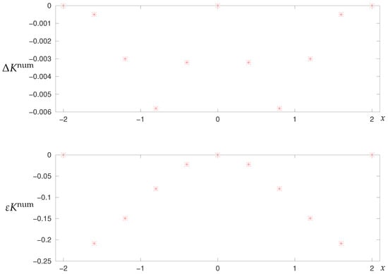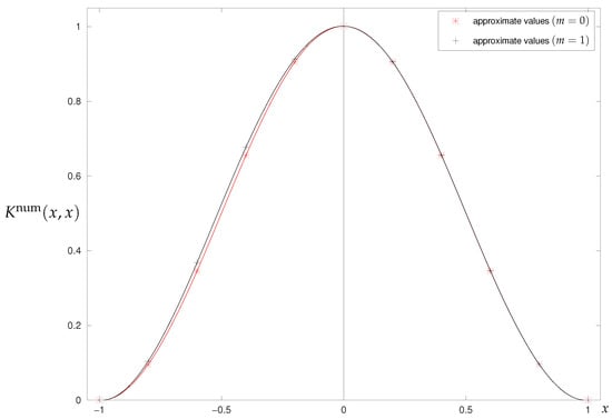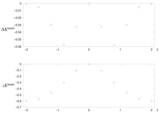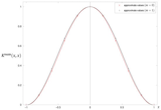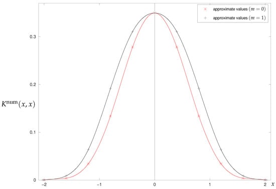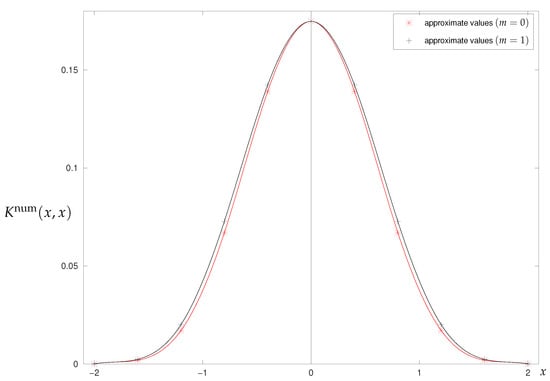 Using the calculated eigenvalues , , eigenvectors , , and Equation (4), we obtain the numerical values of the functional integral.