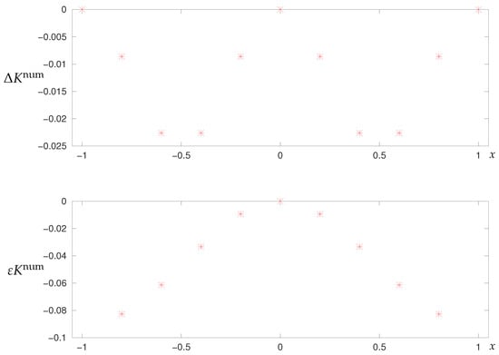 To find and , satisfying Equation (37), we use the Sturm sequence method [] to find an approximate eigenvalue of the operator . Calculate . We select so that with a given accuracy. These are chosen as approximate eigenvalues. Then, using the reverse iteration method [], we find the eigenvectors .