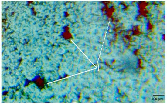 The flocculation time was equal to 30 s; this value was set as a simulation time in the flocculation sub-model (figure with distribution) to match the time of sedimentation of the slurry in the presence of flocculant in the laboratory experiment, since this time was sufficient to carry out complete sedimentation, and thus, complete the flocculation process. During the experimental studies, photographs of clusters of precipitated red mud were obtained, where the floccula (Figure 6) can be characterized as an asymmetric formation surrounding the precipitated aggregates. These images also helped to verify a population balance model that accounts for the size of the deposited aggregates and the symmetry of the floccula. These images were acquired using a microscope and a droplet method of examination. The floccula were sampled using a 2 mL pipette during the interaction process between the precipitated pulp and flocculant and transferred to a microscope slide. An AOMEKIE 64-640 microscope (Ningbo Barride Optics Co., Ltd, Ningbo, China) was used to obtain images of the flocculated pulp.