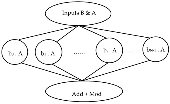 In the current paper, the authors suppose that “N” is the number of tasks that will be executed in parallel (N: the coefficients of the polynomial multiplication operation as shown in Equations (8)–(10)). Moreover, it is assumed that all the “M” PEs are homogenous. There are two levels of parallelism: