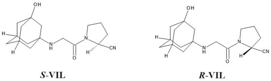 VIL has one chiral center in its structure (Figure 1), meaning it exists in two enantiomeric forms, and it is used in the therapy as an enantiomerically pure S-VIL; therefore, adequate analytical procedures are needed for the monitorization of its enantiomeric purity [3].