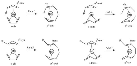 - Tobisch, S. The stereospecific polymerization of 1,3-butadiene mediated by early and late transition-metal catalysts. Towards a deeper understanding of the catalytic structure–reactivity relationships from computational-mechanistic studies. J. Mol. Struct. Theochem 2006, 771, 171–179. [Google Scholar] [CrossRef]