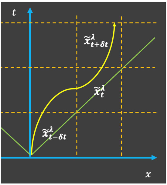 Second, consider the directional derivative in ML spacetime along , where connects two points in ML spacetime, as shown in Figure 6,