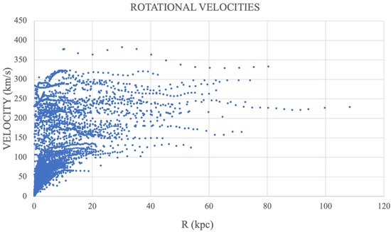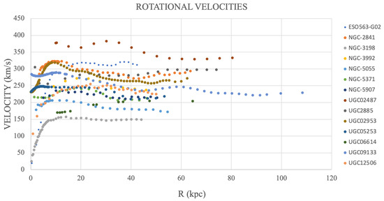 Rotational velocity for the selected galaxies from the SPARC [22] database.