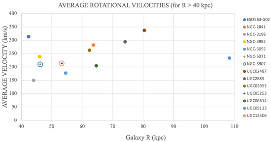 Average rotational velocity (R > 40 kpc) across galaxy radius (max R used as a proxy).
