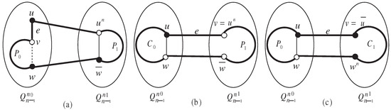 - For , . We can denote the two vertices in by the binary strings as and . By the definition and connection of the binary strings of two vertices, we have and . Similarly as above, it follows that and .