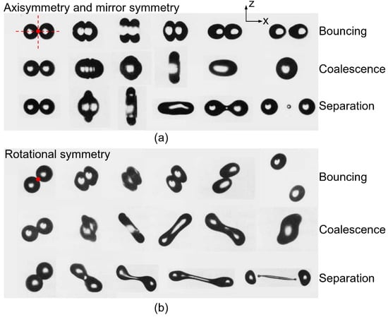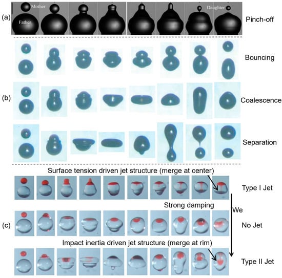 - Huang, K.L.; Pan, K.L. Transitions of bouncing and coalescence in binary droplet collisions. J. Fluid Mech. 2021, 928, A7. [Google Scholar] [CrossRef]