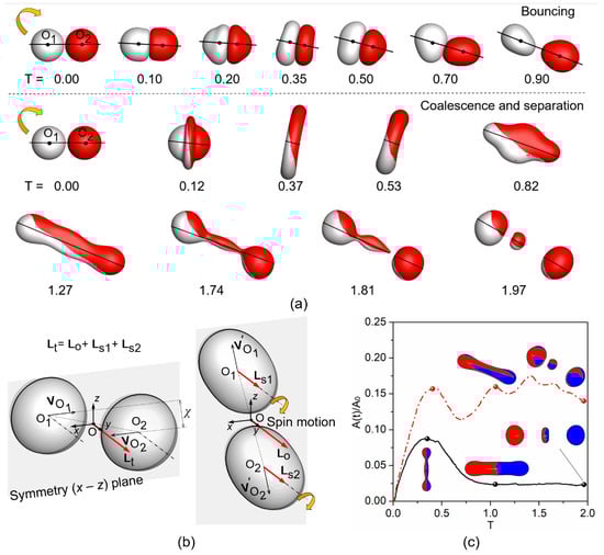 - He, C.; Zhang, P. Nonaxisymmetric flow characteristics in head-on collision of spinning droplets. Phys. Rev. Fluids 2020, 5, 113601. [Google Scholar] [CrossRef]