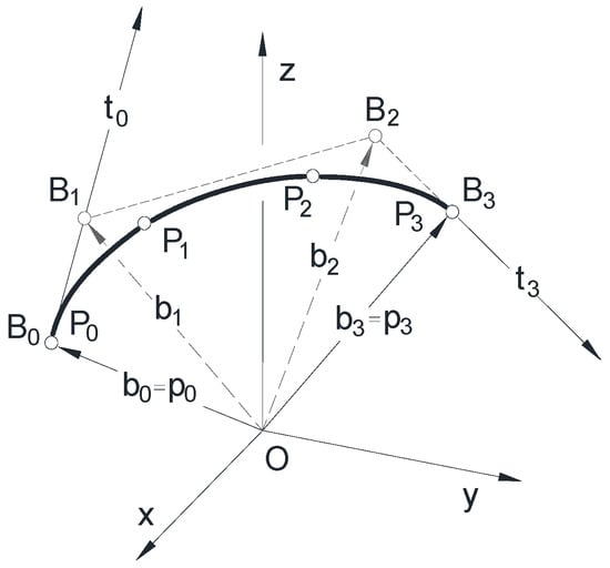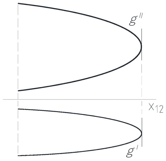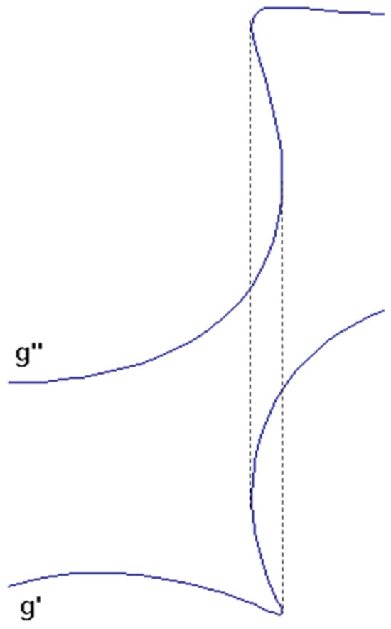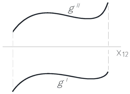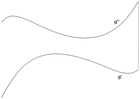 If the curve g does not have a tangent in the profile direction, this means that the tangent at any point P0 with parameter u0 of its images is not in the direction of the recall line, namely the recall line intersects the examined curve in point P0. So, there is no point P0 of the curve g with parameter u0, in the region of which all points P−1 and P1 with parameters u−1 and u1 are located on one side of the recall line of the point P0, where u−1 < u0 < u1. This means that there is no curve segment that has two points on a recall straight line. Because each recall straight line has only one point on the curve g, any point on curve g can be reconstructed from its two images, which means that the representation of the curve is bijective. □