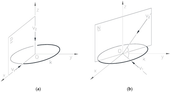 Hereinafter, the statements are made using the term as defined above. Therefore, not only the image plane system, but also the Monge projection can be used for a curve g in an infinite variety of ways. The formulated task was to determine the criteria for the positions of the image plane systems of the Monge mapping relative to an object fixed in the space, to be meet so that the fixed object of the space can be clearly reconstructed only from the two projections on the image planes of the Monge representation only, without any other information [49]. The reconstructibility of the g curve does not change when the image planes are exchanged, so taking this symmetry property into account, all possibilities were considered [50].
