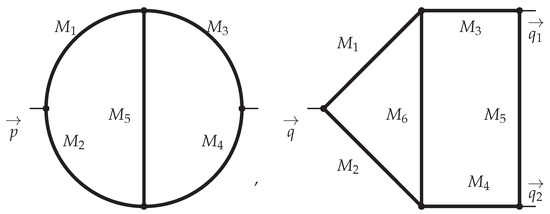 Firstly, we consider the two simplest FIs: and , shown in Figure 2. As already discussed above, using the “projectors” method (see Appendix B), it is possible to introduce the so-called moments . The moments of the FIs shown in Figure 2 are represented by the FIs in Equation (16) for , i.e., .