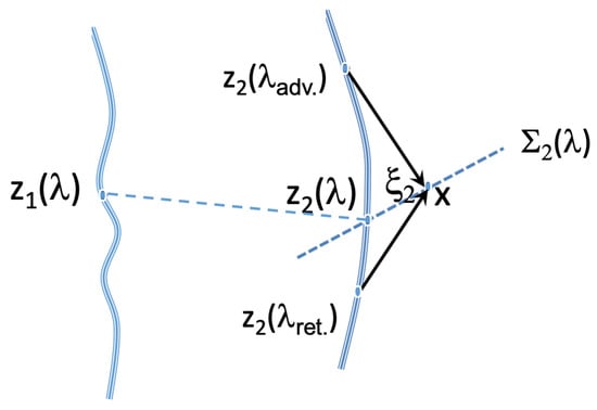 where is a solution of the homogeneous equation , and the propagator satisfies . As it is well known, the choice of the propagator is not univocal; only the total field has a physical unambiguous and absolute meaning. That means that we can have different representations of the field given by Equation (28) by changing of propagator. The most common propagators are the retarded (respectively advanced) one (respectively ) associated with radiation in the forward (respectively in the backward) light cone with apex at point . Advanced waves correspond to anticausal features associated with ‘conspiratorial’ absorptions by sources (i.e., violating the second law of thermodynamics) and are therefore often not used. Moreover, this is actually related to the boundary conditions that are the most adapted in order to analyze the specific problem considered. Indeed, we can always write an arbitrary solution of Equation (28) equivalently as or , and the different free fields are thus not independent. As an example, a typical (in the thermodynamical sense) causal field is generally written after Sommerfeld as a pure radiative field with boundary conditions . This in turn leads to the free ‘outcoming’ field , which is indeed non-singular.