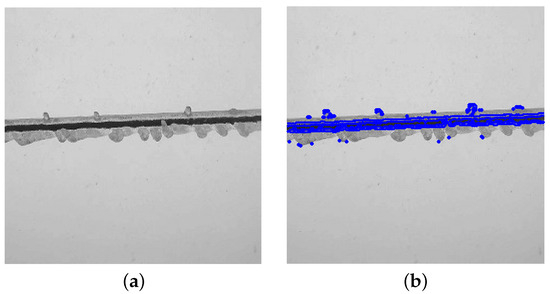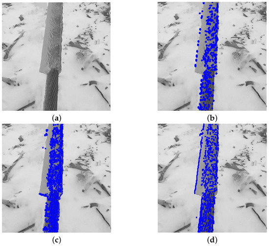 Furthermore, we applied the algorithm to the icing image shown in Figure 12a. In this experiment, we set z to −10 while keeping the sliding-window parameter (w) at 5. Despite the complex background of the icing image, which included numerous branches and weeds, we obtained the desired icing segmentation region by adjusting the parameters from to , then to . The segmentation was unaffected by the cluttered background, showcasing the strong segmentation performance and robustness of the proposed algorithm.