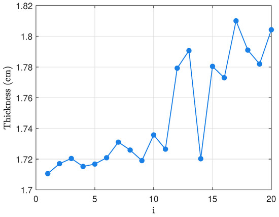 Through coefficient conversion calculation, we calculated 20 distances of icing on the left side of the transmission line, as shown in Figure 14; the calculated average value was cm.