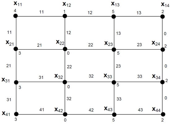 - Calculate the weight of each vertex by adding the label of the vertex and all the edges incident on that vertex, i.e.,whereFurther explanation: To compute the weight of each vertex , we add:1. The label of the vertex: .2. The weights of all edges incident on the vertex: This involves four terms based on the position of the vertex:where: