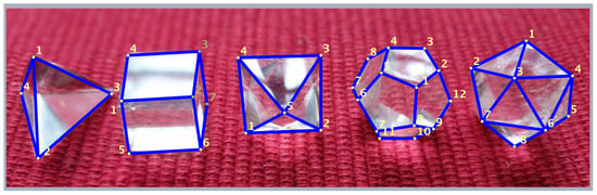 We see the Platonic solids with a labeling of their vertices in Figure 1. This allows us to study and to describe their symmetries via permutations of their vertices.