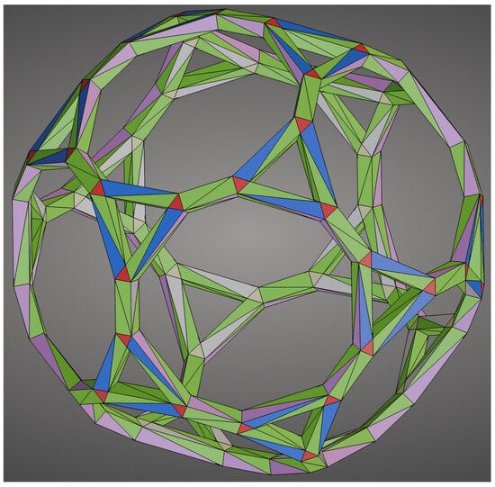 - Coxeter, H.S.M. Regular skew polyhedra in three and four dimensions and their topological analogues. Proc. London Math. Soc. 1937, 43, 33–62, reprinted in Coxeter, H.S.M. Twelve Geometric Essays; Southern Illinois University Press: Carbondale, IL, USA, 1968; pp. 75–105.. [Google Scholar] [CrossRef]