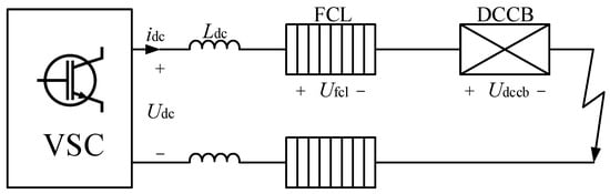 At this moment, the voltage equation of the circuit changes and the condition of the fault current dropping changes accordingly. That is, Udccb + 2Ufcl ≥ Udc. The fault current drops when the voltage at both ends of the current limiter and the circuit breaker exceeds the voltage at the DC side. The voltage added at both ends of the current limiter is far beyond the residual voltage of the circuit breaker, so the residual voltage of the circuit breaker can be ignored after adding the current limiter, and the current-limiting effect is good. At the same time, the current limiter can limit both the fault current amplitude and the rising rate of the fault current. At the beginning of the fault, the converter station can be kept from being blocked by overcurrent and the requirement for DCCB interruption capability and speed are lowered.