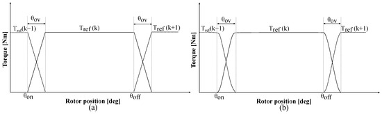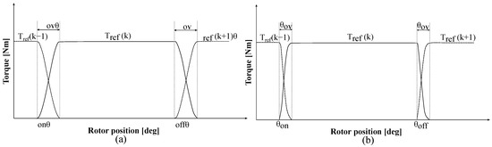 18], the authors introduced TSFs, in which the phase torques did not sum up to the constant reference torque value. A torque dip and torque swell were deliberately introduced in the reference torque profile to reduce and compensate for the actual torque ripple. However, the dynamic characteristics of the SRG drive, due to the inductance of the magnetic circuit, were not accounted for effectively.