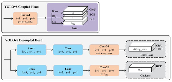Difference between YOLOv5 and YOLOv8 in Head section.