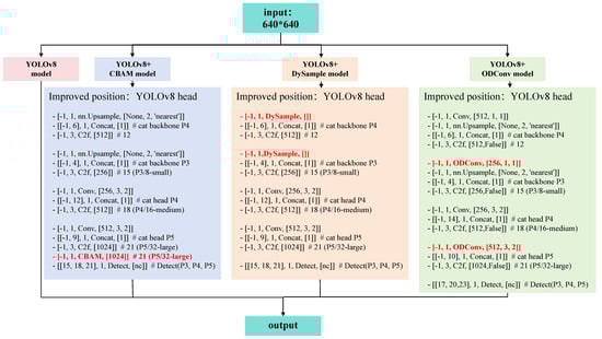 - Model training: Training used four distinct network models—the original YOLOv8 and the integration of the CBAM attention mechanisms, DySample, multidimensional convolutional kernels, and ODConv—into the YOLOv8 network. The appropriate parameters were set, such as the learning rate and batch size. The model was optimized using suitable optimization algorithms to monitor the training process and record metrics such as training loss and accuracy. We sought to identify an appropriate and efficient model through comparative experimentation.