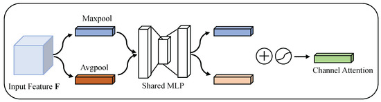 As illustrated in Figure 7, the Channel Attention Module outputs a channel attention weight vector through the application of maximum and average pooling techniques on the input feature map in the channel dimension. These two pooling results are fed into a fully connected layer. The weight vector can be employed to assign weights to each channel of the input feature map, thereby enhancing salient channel features and suppressing those that are unimportant.