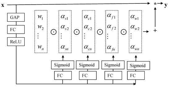 The spatial attention module, illustrated in Figure 8, is analogous to the CAM in that both modules compute the importance of each pixel by manipulating the input feature map. Typically, the module employs global average pooling to derive a feature vector for each pixel, subsequently outputting their weights through a fully connected layer. These weights can be applied to each pixel of the input feature map, thereby emphasizing important regions in the image and suppressing unimportant regions.