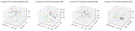 PCA was applied to the positions of 50 particles in f22 of CEC2017 for Hybrid Function 2 (N = 3). Note: The colored dots are the positions of the particles.