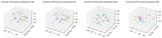 PCA was applied to the positions of 50 particles in f18 of CEC2017 for Shifted and Rotated Rastrigin. Note: The colored dots are the positions of the particles.