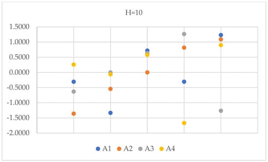 A pair of flexible operational laws known as the AATNrM and AATCNrM can deal with uncertain information with high accuracy and a degree of flexibility. Accuracy is enhanced using the AATNrM and AATCNrM with the help of the involvement of a parameter . The involvement of parameter makes the AATNrM and AATCNrM adaptable for uncertainty handling, especially in various fuzzy frameworks. Consequently, various fields have benefited from the applications of the AATNrM and AATCNrM, e.g., decision-making, pattern recognition, data mining, and so on, especially in economics and business sectors. Due to the desirable flexibility, the AATNrM and AATCNrM can be integrated with IVIFRS to deal with uncertainty in a more accurate and nuanced way. We have changed the values of parameter and observed the results. Note that the obtained clusters remained the same for all the values of the parameter. We obtain the same clusters as provided in Table 3. The following Figure 3, Figure 4, Figure 5, Figure 6, Figure 7, Figure 8 and Figure 9 show the sensitivity analysis of the developed model.