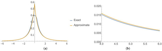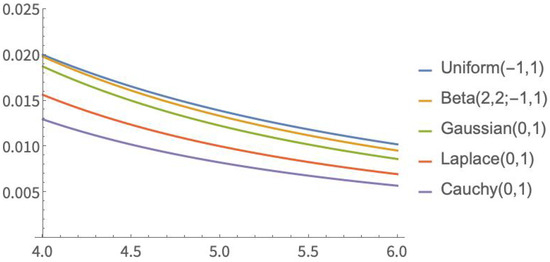 Using the Gaussian case as a guideline, for , we assume that is a continuous and smooth probability density function of a symmetric random variable X, in the sense that there is a value such that, from the mean value theorem, the integral in (10) can be computed as