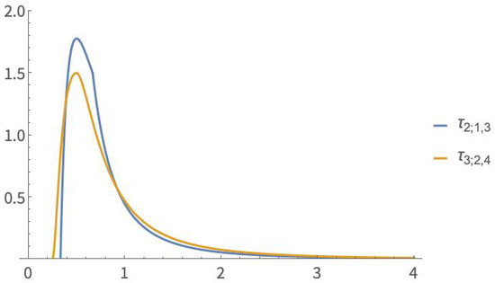 As for the joint probability density function of , using the recurrence Formula (9), we obtain
