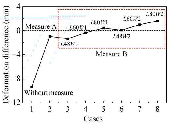 Comparison of the difference in settlement for the adjacent building with different measures.