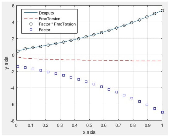 Table 4 shows the first 20 results of evaluation of the and torsions, for different values of and , over the interval , with for the interval partition. As can be observed, as λ approaches 1, the values of the fractional torsion approach the values of the classical torsion .
