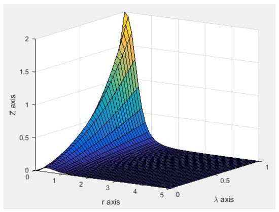 In Table 5, the symmetry of the data by column is observed, with respect to the data in row 10; moreover, if the parameter λ tends to 1, the values of the vertical sections tend to the integer case corresponding to column .