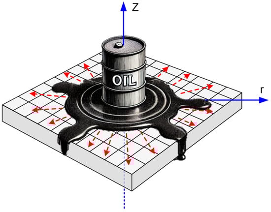 2.2. Diffusion of the Spilled Pollutant Problem and Derivation of Its Solution