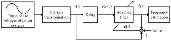 Due to the adaptive filters not needing the statistical properties of the input signal and effectively working in non-stationary environments, they have become an important tool in signal processing. For the design of adaptive frequency estimations, the adaptive filter can employ the error signal of the output and observing signals to update the coefficients of the filters. Therefore, the experimental flow is given in Figure 1.