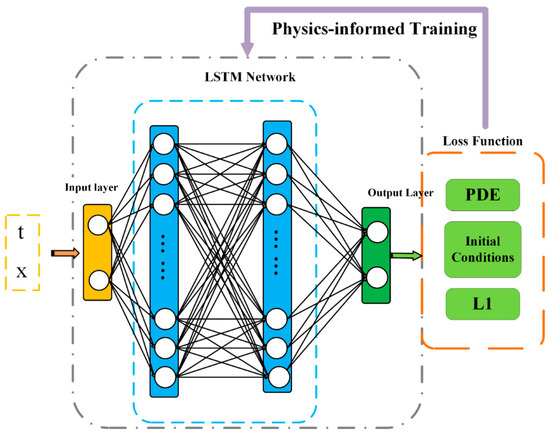 The classical PINN algorithm is generally applicable for solving ordinary partial differential equations. However, when solving initial value problems for hyperbolic partial differential equations, such as shallow water equations, the unique properties of these equations—such as shocks, discontinuities, and other non-smooth characteristics—can lead to entropy dissipation and numerical stability issues. In traditional numerical methods, artificial viscosity is introduced to reduce numerical oscillations and enhance stability. Additionally, by controlling the time step, smaller time steps are used around discontinuities to better capture their evolution. References [30,31] incorporated LSTM/RNN into PINN to enhance the robustness of the algorithm. References [32,33] emphasize the importance of generalization in machine learning, leading to the introduction of regularization terms in networks to improve the algorithm’s adaptability. Inspired by this, this paper introduces the concepts of LSTM and regularization into PINN for solving shallow water equations, and incorporates an attention mechanism into the LSTM network structure to avoid over-processing irrelevant or secondary information, thereby improving the model’s efficiency and performance.