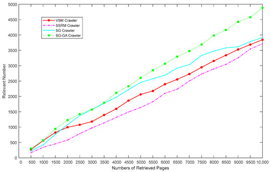 This experiment implemented four kinds of focused crawlers, including VSM-focused crawlers, SSRM-focused crawlers, SG-focused crawlers, and SG-GA-focused crawlers. In this experiment, four kinds of focused crawlers are achieved by using the Python language on the PyCharm development platform with Python version 3.9.10. In addition, the comparison diagrams of experimental results are drawn by using the Matlab software with version R2019a. The experimental results show that the proposed focused crawler can crawl more high-quality web pages relevant to the given topic. This part includes two parts: experimental design and experimental results. The experimental design includes experimental algorithms, initial experimental data, and experimental evaluation indicators. The experimental results show that the proposed focused crawler has a higher performance compared with the other three focused crawlers.